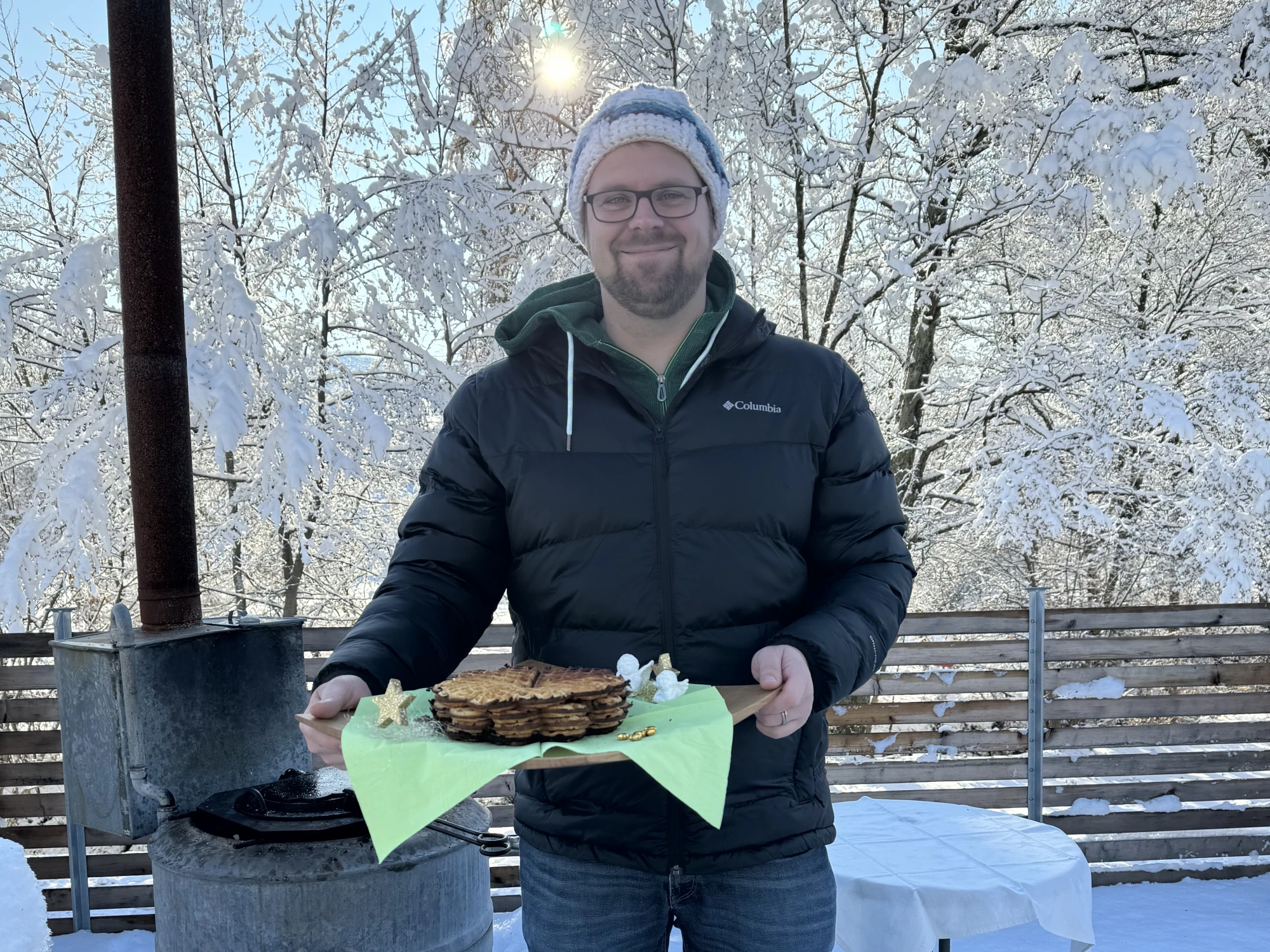 Backen auf offenem Feuer: (Ein Elektrisches Waffeleisen geht natürlich auch.)